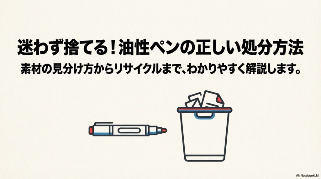 油性ペンの捨て方は、素材(プラスチックか金属か)と、お住まいの自治体のルールの2点を押さえることが何より大切です。