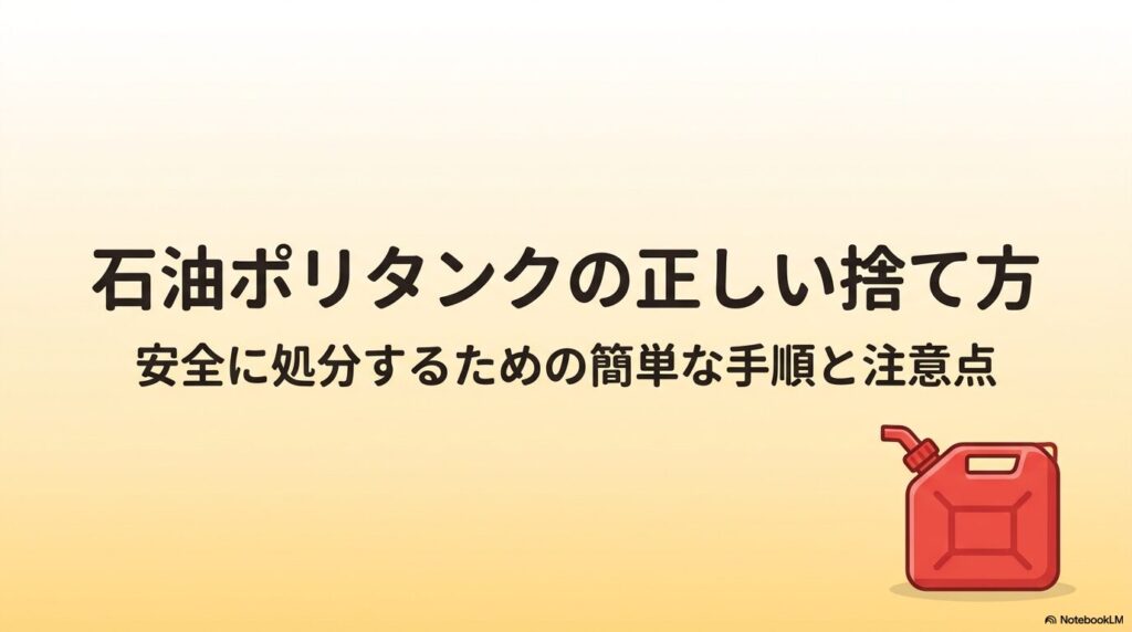 自治体のルールは地域によって違いますし、ガソリンスタンドでの回収や不用品回収業者の利用など、灯油ポリタンクの処分にはいくつかの選択肢があります。無理に自分で処理しようとして、思わぬトラブルになるのは避けたいところです。