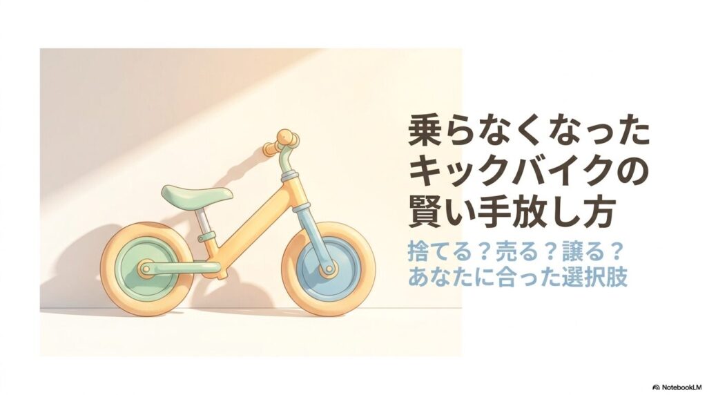 状態が良いならまずはメルカリや買取を試し、難しければ自治体のルールに従って正しく処分するのが、最もストレスのないストライダーの捨て方と言えるでしょう。