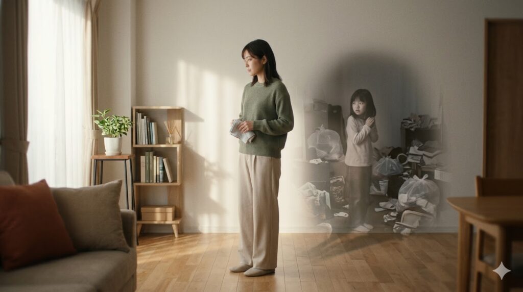 かつての私も、積み上がった物の山を見るたびに、自分の存在まで否定されているような惨めさに震えていた一人でした。家が休まる場所ではなかったという経験は、単なる片付けの苦手意識ではなく、もっと深い育ちのトラウマとして心に残ります。